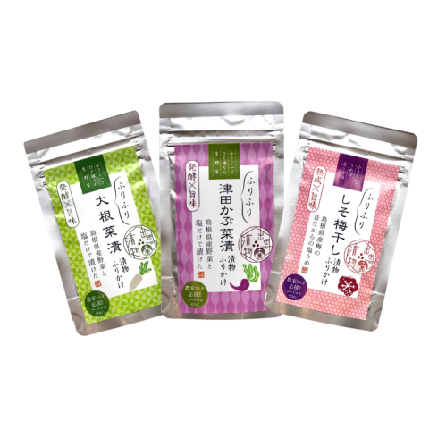 島根特産の野菜を塩だけで漬け、熟成発酵させた漬物をフレーク状に仕上げたふりかけです。