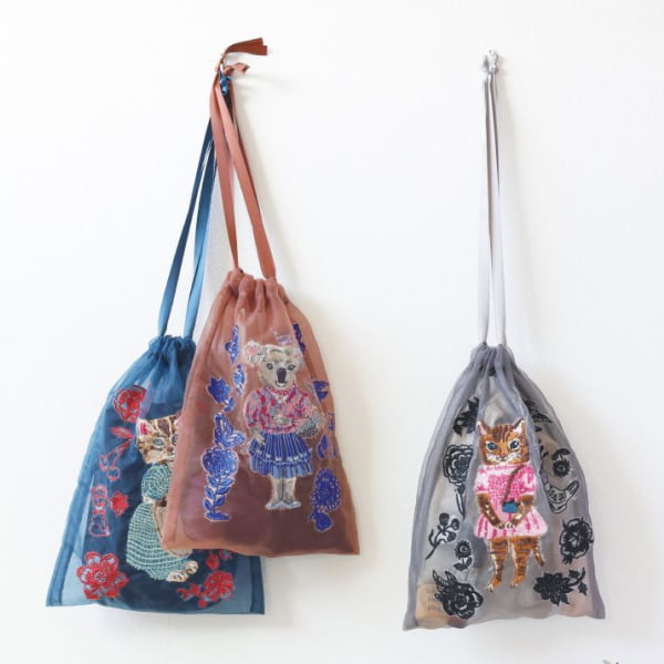 バッグやハンカチ、器や布ものなど、手に取るたびに小さな物語の気配を感じられる作品として、多くの人に親しまれています。